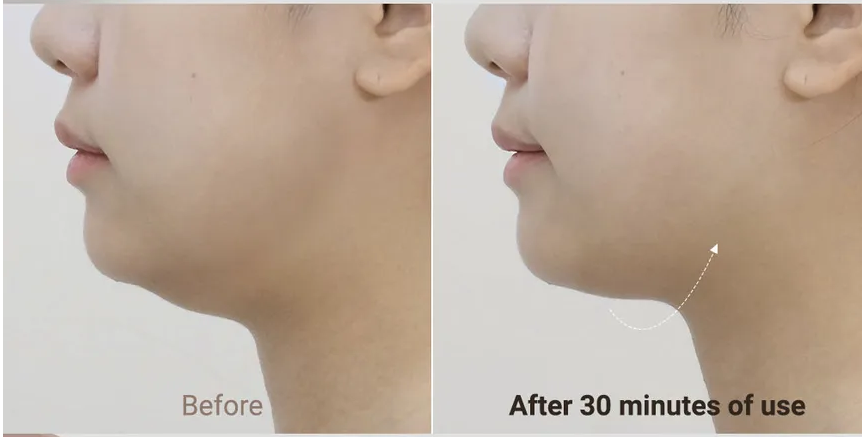 Parche para la mandíbula con tecnología Wrappinglagen™ levanta la zona inferior y lateral de las mejillas para una apariencia más definida y firme.